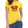 Camiseta mujer naranja Super Mamá personalizada con logo estilo superhéroe, regalo original para el Día de la Madre